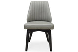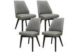 This 4-piece dining chair set adds a new dimension to your dining space. The chairs, which are designed beautifully in contemporary classic style, ensure both relaxation and robustness with their leather upholstery and solid rubberwood legs in a unique look. Decorate your dining area with these chairs in iron colour and enjoy the beautiful transformation of your place. The dining chairs provide comfortable back and lumbar support. Because of their curved backs, tapered legs, and seamless stitching on the upholstery, they are a nice addition to the dining area. They can be paired with various styles of dining tables. A one-year warranty is included with the fully assembled dining chairs.