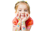 Super trendy and colourful kids Princess themed nail stickers and tattoo fashions! In this kit are 3 big sheets with over 260 temporary nail stickers and tattoos. Wear them out and about and make your own fashion statement!