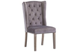 This dinner chair, upholstered in soft-to-touch velvet fabric, provides a comfortable place for dining, reading or just relaxing. The decorative button on the backrest and metal rivets along the edges increase the chair’s classic beauty. Supported by solid rubberwood legs, the dining seat is stable and sturdy.