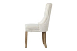 The contoured high back backrest is designed to offer greater support that wraps around your upper body while the well-padded high-density foam seat is as comfortable as ever with every sitting. Better still, the interior side of the seat are fitted with copper stud trim and button tufted backrest oozes class and sophistication all round. With its sturdy wooden legs, the dining chair is also extremely stable and handle up to 150kg in weight capacity.