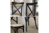 Oikiture 8PCS Crossback Dining Chair Solid Birch Timber Wood Ratan Seat Black