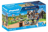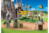Embark on an exciting journey into the world of knights with the PLAYMOBIL Knight’s Birthday gift set! Here, the brave knight “Prince Arwynn” is celebrated in style. Earn your gifts through thrilling battles and indulge in delicious donuts and muffins. Take aim with the cannon to hit the gift bags and win fantastic prizes. Collect points in the thrilling tin can shooting game and experience endless adventures. With a doll and a toy boat as gifts, a rotating and swivelling cannon, and the option to swap the birthday hat for a helmet, this set offers hours of imaginative play. The PLAYMOBIL gift sets come in a decorative box that can be personalised with a name, saving on gift wrapping – a knightly honour for every birthday hero!