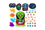 Kids will discover 4 of the alien’s organs including its heart, eyeballs, guts, and brain. Dissect each organ to unearth Alien Treasure Hunters encased in different oozy, squishy, stretchy compounds! Rescue them from the galactic goo and swap the Hunter’s body parts to create unique alien figures! Equip the Alien Hunters with 9 different weapons and accessories, so they can defend the galaxy!