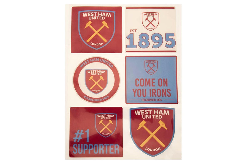 West Ham United FC Assorted Designs Car Decal Set (Pack of 6) (Claret Red/Sky Blue) (One Size)
