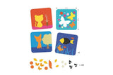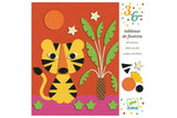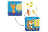 Children assemble and superimpose felt stickers to create four scenes of cute colourful animals.