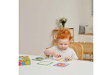 The 20 high-quality cards features illustrations of opposites which are revealed by water. The reverse side features a repeating pattern puzzle for extending playtime.