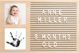 - Letterboard set includes 294 White letters, numbers and symbols, includes Clean-Touch ink pad to create baby’s handprint, no mess and 100% baby safe, hand never touches the ink!