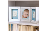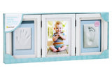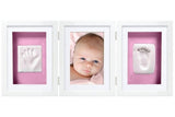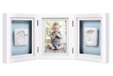 Capture and cherish your little ones prints forever with Pearhead’s babyprints deluxe desk frame. This classic frame comes in white and gray! It is a wooden shadowbox frame with three panels to display your baby’s handprint, footprint, and adorable 4” x 6” photo.