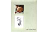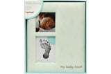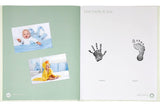 - Includes over 50 fill-in pages and clean touch ink pad; cover includes opening for both your baby’s photo and your newborn baby’s handprint or footprint