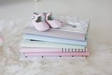 Welcome home your adorable new bundle of joy and celebrate all of baby’s first moments and memories with this peach rainbow baby book by Pearhead.