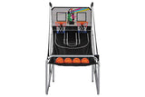 Bring the thrill of the arcade home with your very own Basketball Shooting Machine. The game is made from quality coated steel tubes that are rust-resistant as well as waterproof and stain-resistant printed polyester fabric that is sturdy and durable, so you can use it indoors or outdoors. Comes with 8 different popular game modes to challenge your friends and family to thrilling games of skill. Realistic sound effects make you feel like you’re actually at your local arcade hotspot. The LED automatic score counter provides an accurate and impartial referee for two players, no fighting on the courts! The high net catches stray balls and returns them quickly and easily so you can get back to fun. The triangle frame design and anti-slip feet always keep the game stable. With a foldable, portable and easy-to-assemble velcro design, you can play basketball in minutes, whether at home or on the road. Includes a bonus of four basketballs to always keep the fun rolling. Game on to victory with your very own arcade-style Basketball Shooting Machine.