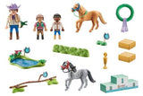 Start the competition with your pony in the Playmobil Pony Tournament. On the tournament grounds with various obstacles such as water trench, branch, and straw bales, talented riders can showcase their skills. Riding the course flawlessly is not that easy, but everyone is giving their best. At the end awaits a winner’s trophy for the child and a laurel wreath for the pony. However, whether first or second, being there is everything!