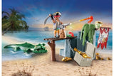 Embark on a treasure hunt with the pirate, but beware: An alligator is also interested in the valuable chest—or is it more in the pirate? The fantastic Playmobil Starter Packs invite children to dive directly into the diverse world of Playmobil. The sets include play figures and matching accessories from popular Playmobil worlds, are quickly assembled, and immediately ready play. This is part of Playmobils first eco-friendly product line consisting of, on average, more than 80% sustainable materials. Discarded plastic waste is given a new life and serves as a source of material for this extraordinary play world. This conserves resources and, above all, the environment.