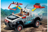 RC capable Rally Car with extendable ramp. Hit the track with the cool Rally Car from Playmobil! Put on the helmet and start the next race with the Playmobil rally driver. Thanks to its movable front axle, the vehicle adapts effortlessly to any terrain. When the hood is opened, it reveals the engine block. Remove the roll-bar to insert the figures.