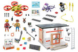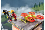 The Icaris lab can be entered through two swinging doors. The research section houses analytical equipment, computers and a projection table for examining rock samples and evaluating drone images. In the roof area of the station is the drone landing pad. The large drone can be controlled from here. A foot clamp is integrated in the center of the top of the drone so that a figure can fly along standing up. Also includes a working cannon.