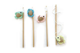 The wand consists of a flexible rod and a canvas fish that is connected to it with a string.