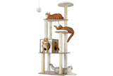 VASAGLE Feandrea WoodyWonders Cat Tree with 5 Scratching Posts & Washable Removable Cushions – Greige