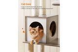 Watching birds on the top perch, sleeping in the cave, or playing on the base board—this 65” tall cat tree offers varied fun on different levels for your cats and is ideal for multi-cat households