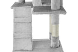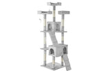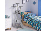 This cat tree has two ramps, which not only enhance the design of the structure but also are convenient for various activities on the structure. It comprises of six platforms and has two condos, thus accommodating multiple pets.