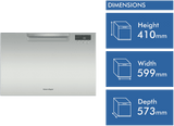 It has a 3.5 star energy rating. The Fisher & Paykel dishwasher features a 599mm width, a 410mm height, and a 573mm depth. It features a stainless steel finish. You can load the dishwasher, turn it on, and walk away with this Fisher & Paykel dishwasher.