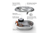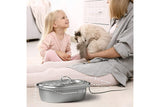 This Pet Water Fountain is en­tirely made out of 304 stainless steel, BPA-free, rust, and corrosion-resistant. It is easy to clean, all parts except the pump and filters are dishwasher safe. It is equipped with silent pump technology, whe­re the pet water dispenser operates below 30 dB which is almost inaudible.