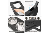 This dog stand feeder is made of high-quality plastic plate and the bowl is made of stainless steel, which is easy to clean.