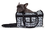 - Soft-sided semi-collapsible pet carrier features durable quilted polyester construction, and measures 19” L x 10” W x 12” H.