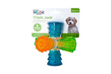 The Triple Jack interactive dog toy by Outward Hound offers a multi-sensory play experience with three different sounds and textures! Each color corresponds to either a squawk, grunt, or squeaky squeaker and a unique ribbed texture that is intriguing and gentle on the gums.