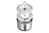 Made of food grade 304 stainless steel, the stainless steel pet fountain is convenient and safe in keeping the water clean and hygienic. You can turn the flower cap or petals to achieve 3 different flow modes: Flower Waterfall, Flower Bubble and Soft Fountain. Different modes meet the needs of different pets and encourage pets to drink more water.