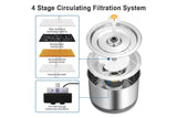 The stainless steel pet fountain is equipped with an activated carbon filter and a