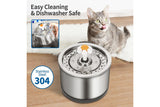The stainless steel pet fountain has a large drinking space, suitable for small and medium pets. The water dispenser has a tank capacity of 2.5 L, allowing you to leave enough drinking water for your pets on short trips or vacations.