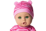 Adora PlayTime Baby Tiger Bright is perfectly made for toddlers ages 1 and up. Weighing about 340gms with a soft cloth body and weighted bottom, your little ones can cradle & carry her around wherever they go. Her open-mouthed expression fits to suck her thumb when she gets ready for naptime, and she makes a great playmate with the rest of Adora PlayTime Baby Dolls.
