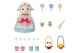 - Contents: Sheep mother, Tricycle, Popcorn Maker, Popcorn x6, Popcorn Cup (Pink) x2, Popcorn Cup (Blue) x2, Popcorn Bucket (Rabbit), Popcorn Bucket (Bear), Scoop, Heart Lolly, Star Lolly, Round Lolly, Rabbit Muffin, Cat Muffin, Shelves.
