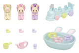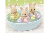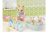 - Set of three newborn rabbit triplet babies with baby bath & toy train.