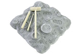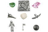 This square of lunar landscape contains hidden gems and artefacts. Using the wooden mallet and chisel, carefully chip the compacted rubble then brush away to unearth 9 hidden treasures from outer space.
