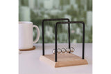 This iconic science toy has been updated to make a classy desk accessory. Featuring beech wood base and stainless steel frame and 5 balls. Simply lift one ball and let it do to watch conserved momentum and energy work in front of you! This is the medium size standing at 14cm tall.