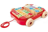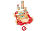 - Learn while you play with this wonderful pull-along trailer filled with stacking blocks! The blocks feature letters so little ones can learn the alphabet as they build up their stacks!