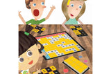 Draw a tile printed with a multiplication equation from the central pile, then find the corresponding answer on your playing card. Place the tile on the matching spot on your card. The first player to complete their card by matching all the equations wins!