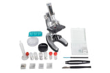 This stylish microscope comes with a sturdy carry case and everything you need to start your discovery of the microscopic world! This 28 piece kit includes 5 prepared slides, 7 blank slides, brine, dye, a petri dish and more!