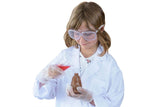 The kit comes with a model volcano, rocket, chemicals, and equipment including protective goggles and gloves.
