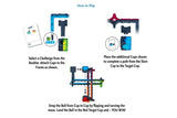 First, arrange the cups around the frame to build a maze. Then, drop the ball and carefully flip and turn the maze to get the ball to drop from cup to cup and hit the target. Once you’ve completed all the challenges, build your own and prove to everyone that you are the Master of Gravity!