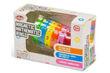 Magnetic Mathematic Rings by Tobar is an excellent tool for learning about equations and algebra. It consists of magnetic rings that come in various colours. Each ring has numbers and mathematical symbols around their edges. The rings can be arranged in any order, giving people the flexibility to create numerous mathematical equations. Create a mathematical problem and either solve it yourself or give to a friend to solve.