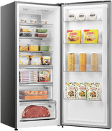 The generous 384-liter capacity provides ample room for bulk frozen goods and meal preps, while the Total No Frost system prevents icy buildup for fuss-free maintenance. Switch effortlessly from freezer to fridge with the innovative switchable cooling system. Electronic touch controls and modes like Super Freeze boost freezing power at the touch of a button. Hisense backs this freezer with a 3 year warranty, so you can rely on its durable stainless steel construction.