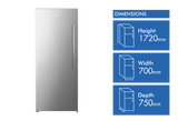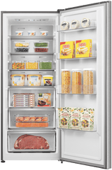 Discover a smart and spacious way to store your frozen foods with the Hisense 384L Vertical Hybrid Freezer. With its sleek silver finish and reversible door, this upright freezer blends seamlessly into any modern kitchen.