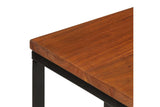 - Material: Solid acacia wood with a honey finish, black powder-coated iron