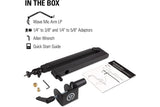 - Ball head with 1/4” screw and 3/8”-5/8” adapters