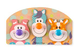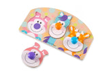 - Pieces include pig, horse, and cow with easy-grasp wooden knob