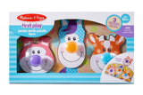 The smiling pig, horse, and cow have wooden knobs for noses that are easy to grasp. Babies and toddlers will delight in matching pieces to pictures on the sturdy wooden 14-inch by eight-inch puzzle board, discovering colours and patterns, and developing fine motor skills. First Play puzzles and toys feature bright colours, bold patterns, and whimsical designs that boost skills while sparking imagination and wonder – right from the start!
