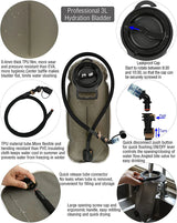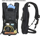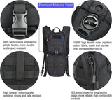 The MOLLE suspension system expands to attach more items.- The cloth, buckle, zipper and webbing are all made from the high-grade material to ensure the strength and durability of the pack. Cloth is water resistant processed to secure your gears inside. You can rest assured to use it in various harsh occasions.- 2.5L leak proof water bladder: You no longer need to hold the long hose to fill water, just detach the hose to fill water easily. TPU Material is much more bending resistant and cold resistant than ordinary PVC material.