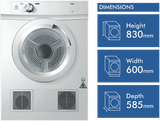 Compact yet powerful, this 600mm wide dryer delivers 6000ml capacity in a slim, wall-mountable design.